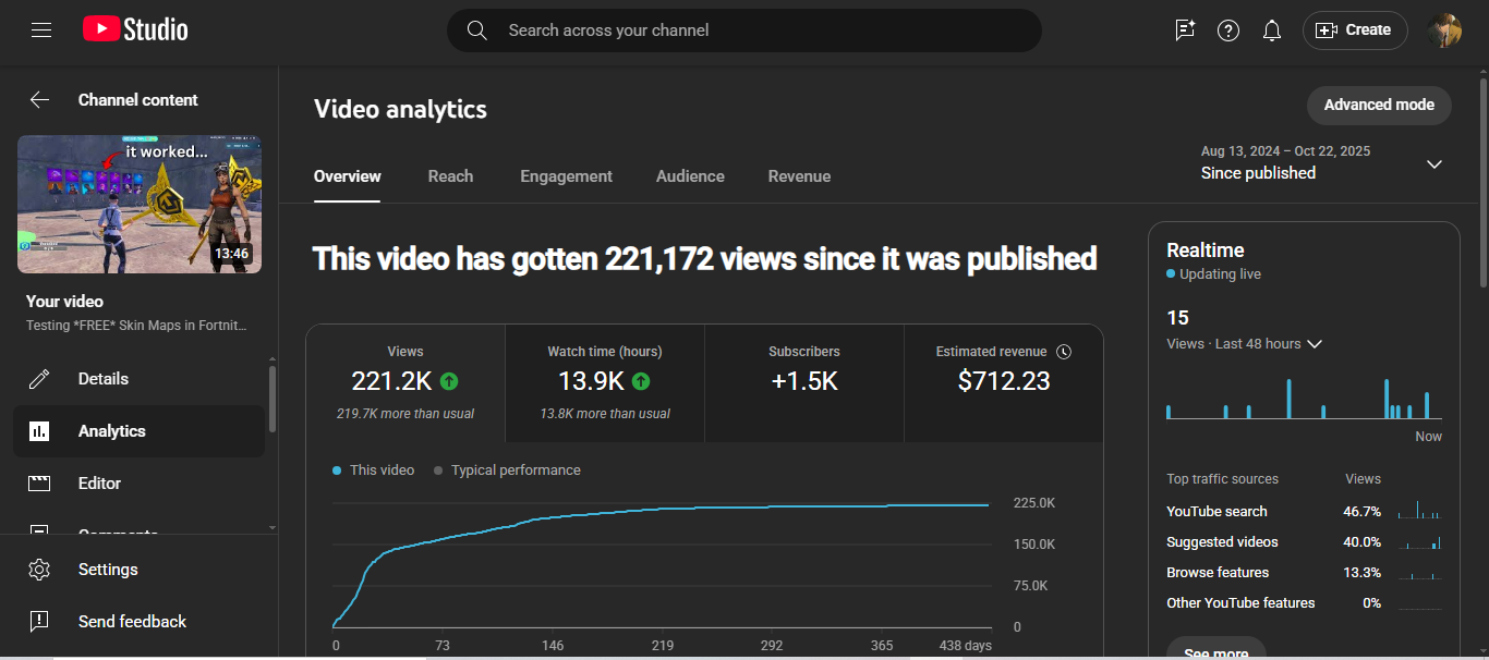 Here is my Channel Analytics: